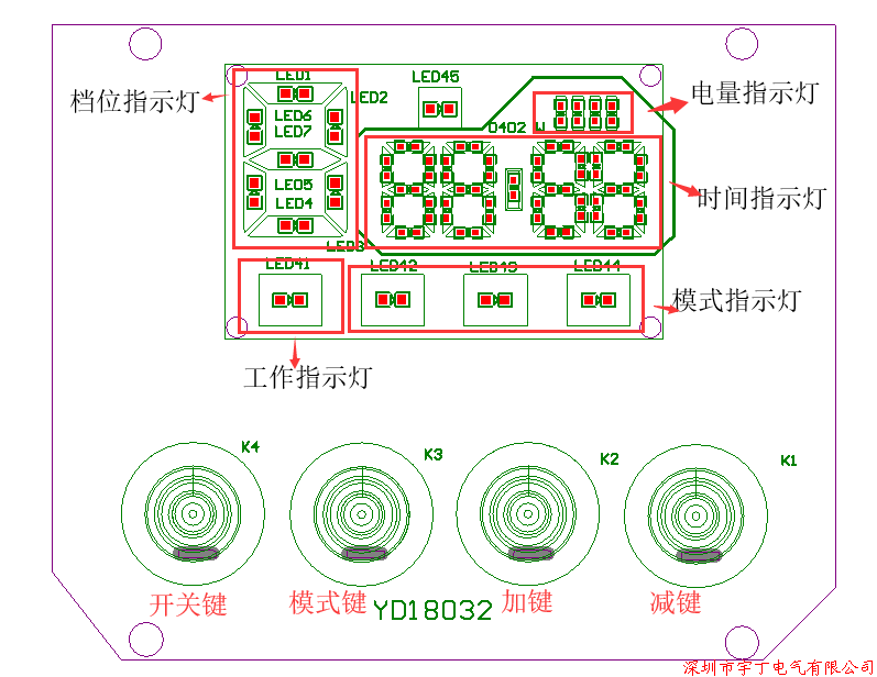 | 显示说明 | LED个数 | 指示功能 | ||||||||||||